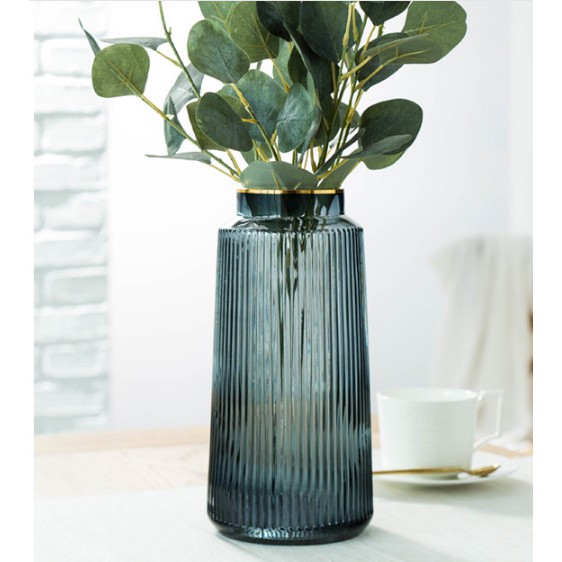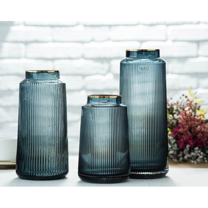 Lọ Hoa Thủy Tinh Cao Cấp - Bình Hoa Bắc Âu Miệng Vàng