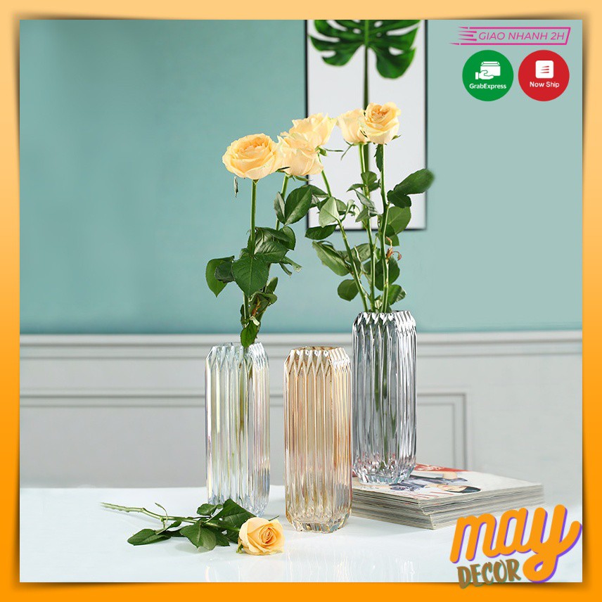 Lọ Hoa Thủy Tinh Cao Cấp, Bình Hoa Thuỷ Tinh Vuông Sang Trọng Độc Đáo [Bao bể vỡ 100%] | MAY Decor