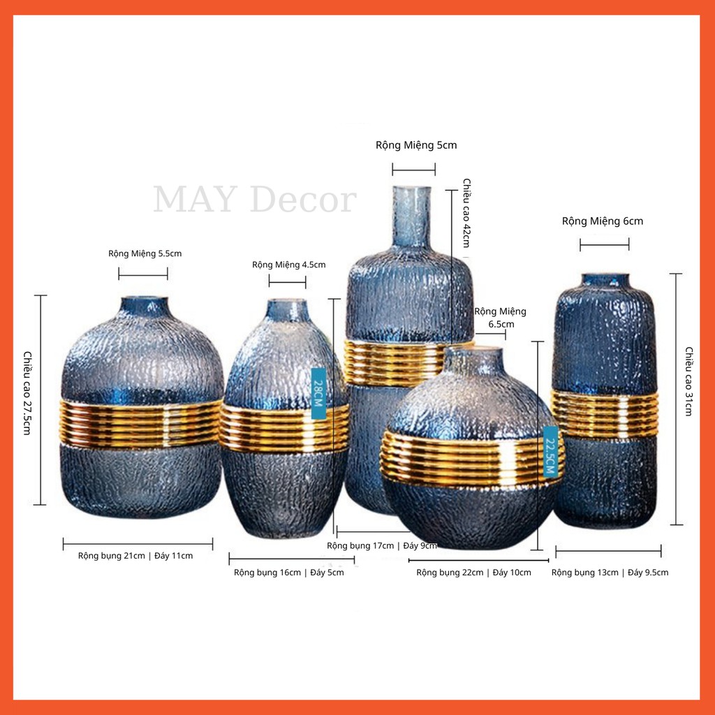 Lọ Hoa Thuỷ Tinh Cao Cấp, Bình Hoa Thủy Tinh Trang Trí Nhà Cửa Decor Nội Thất Sang Trọng | MAY Decor