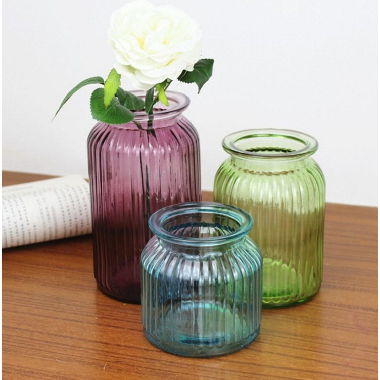 Lọ hoa thủy tinh mini Châu Âu trí nhà cửa - cắm hoa lụa, hoa tươi sang trọng (mẫu thấp nhất nhé)Chất liệu thủy tinh với màu sắc và những kẻ sọc độc đáo vừa dùng cắm hoa, trồng cây thủy sinh, vừa để tủ kệ như vật phẩm decor nội thất độc đáo hay đơn giản cắm bình quả kim ngân để bàn trà bàn sofa vô cùng độc đáo đẹp mắt