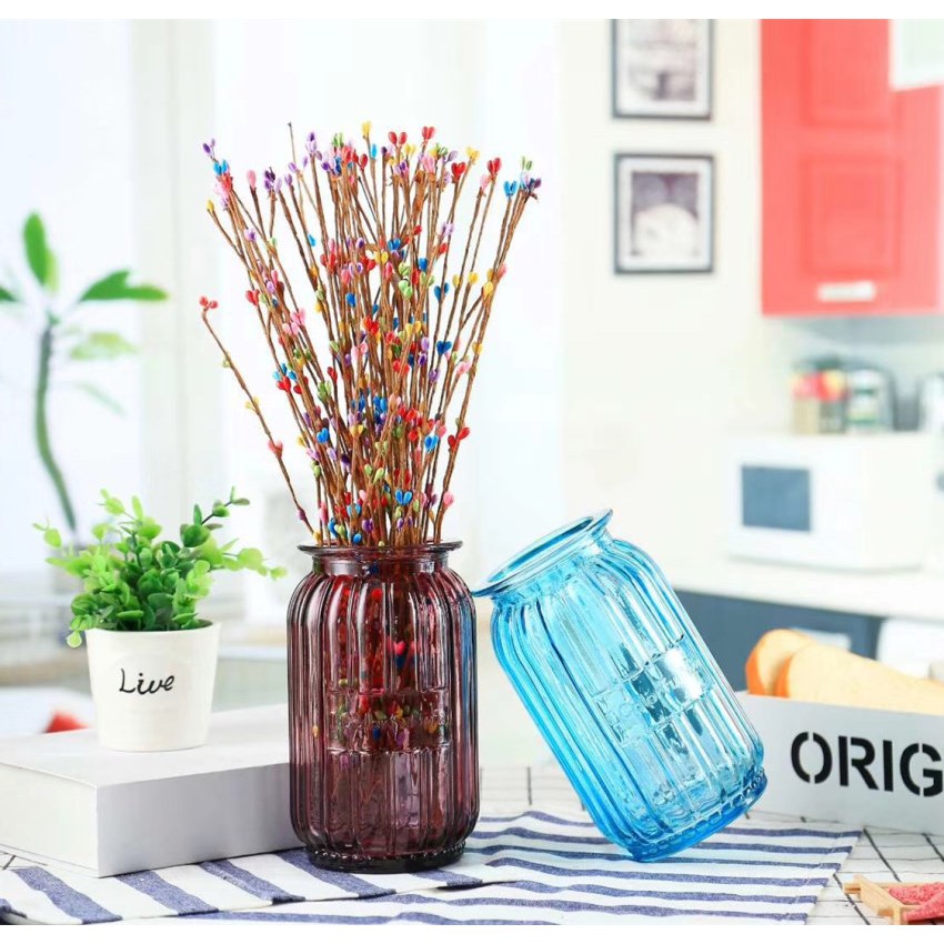 Lọ thủy tinh cắm hoa phong cách châu Âu dùng cắm hoa tươi, hoa lụa hoa giả trang trí phòng...Chất thủy tinh dày với màu sắc trang nhã dễ cắm nhiều loại hoa