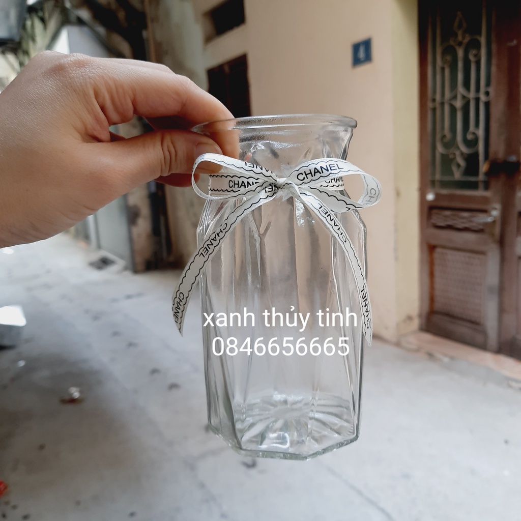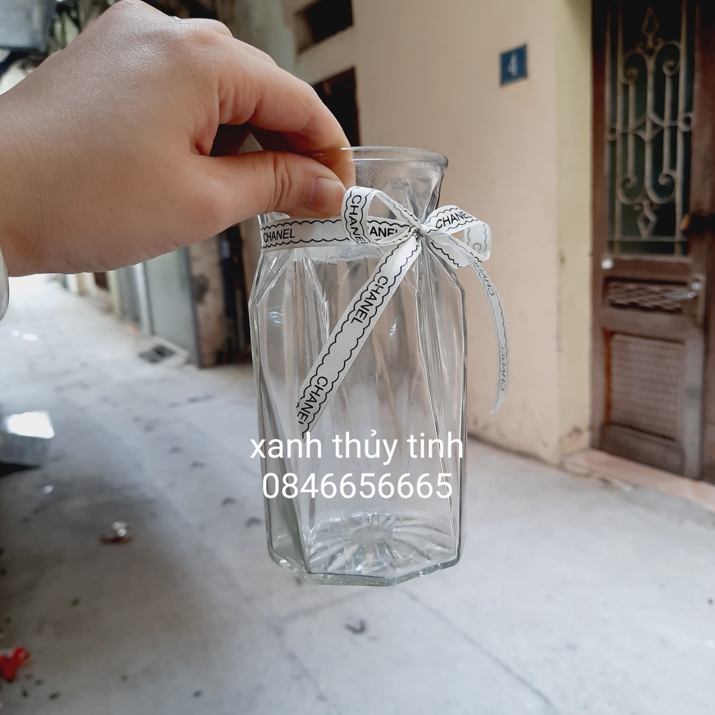 Lọ hoa thủy tinh đa giác, lọ nhỏ 15cm, màu trắng trong - phong cách vintagechiều cao: 15cm