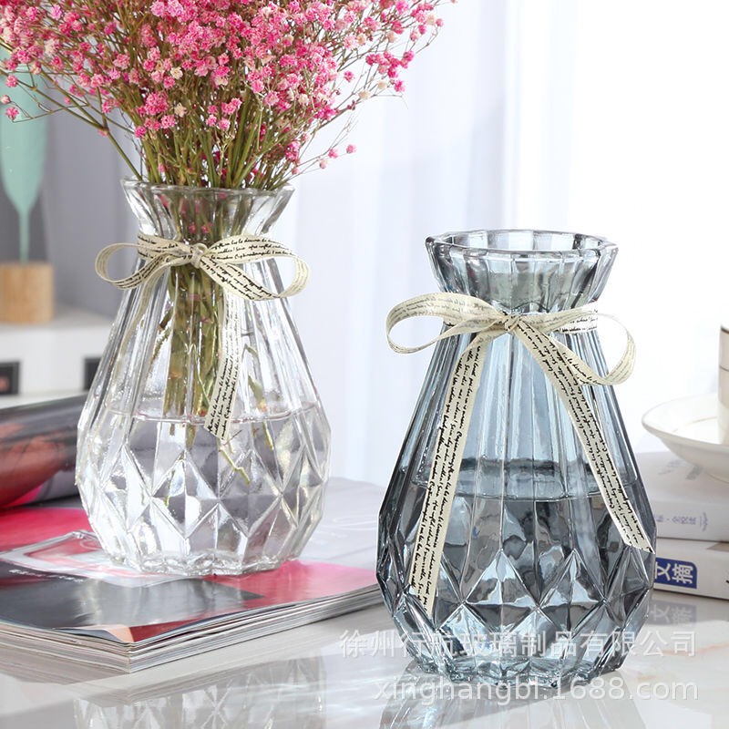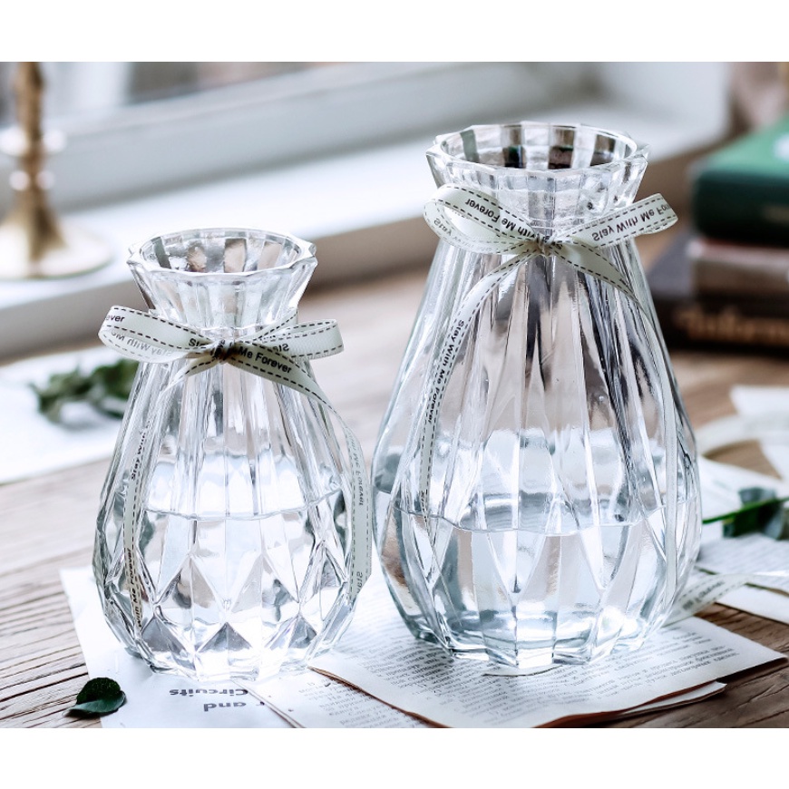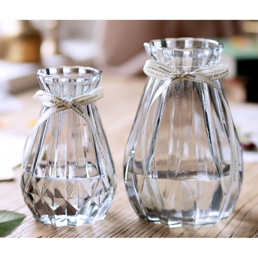 Nhà cửa & Đời sống > Trang trí nhà cửa > Bình trang trí || Lọ hoa thủy tinh đa giác, lọ nhỏ 15cm, màu trắng trong - phong cách vintageCòn hàng