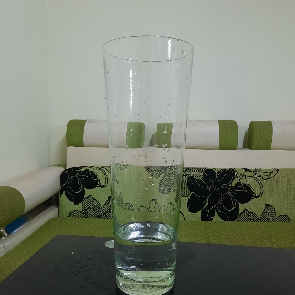 Lọ hoa thuỷ tinh dạng óng chữ V cao 40cm đường kính 15cm, lọ hoa trang trí, hồ nuôi cáThiết kế dáng trụ nhưng thành hình chữ V, miệng rộng 15cm, đường kính đáy 10cm