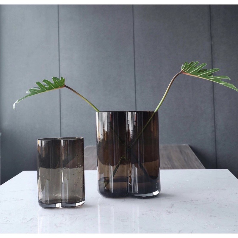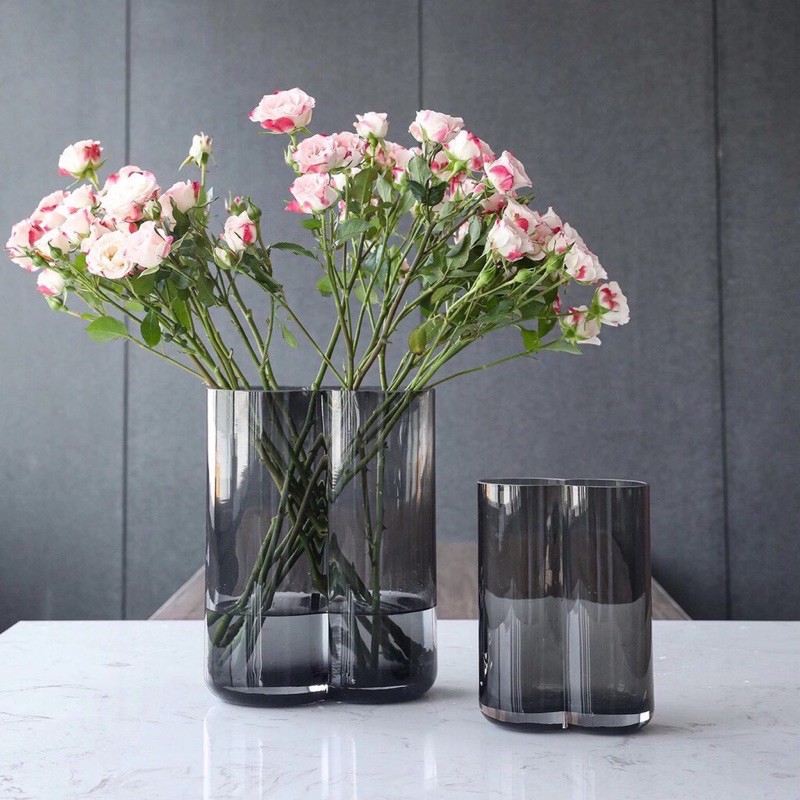 Lọ hoa thủy tinh đôi phong cách Bắc Âu, lọ hoa đôi 2 màu nâu và xám khói