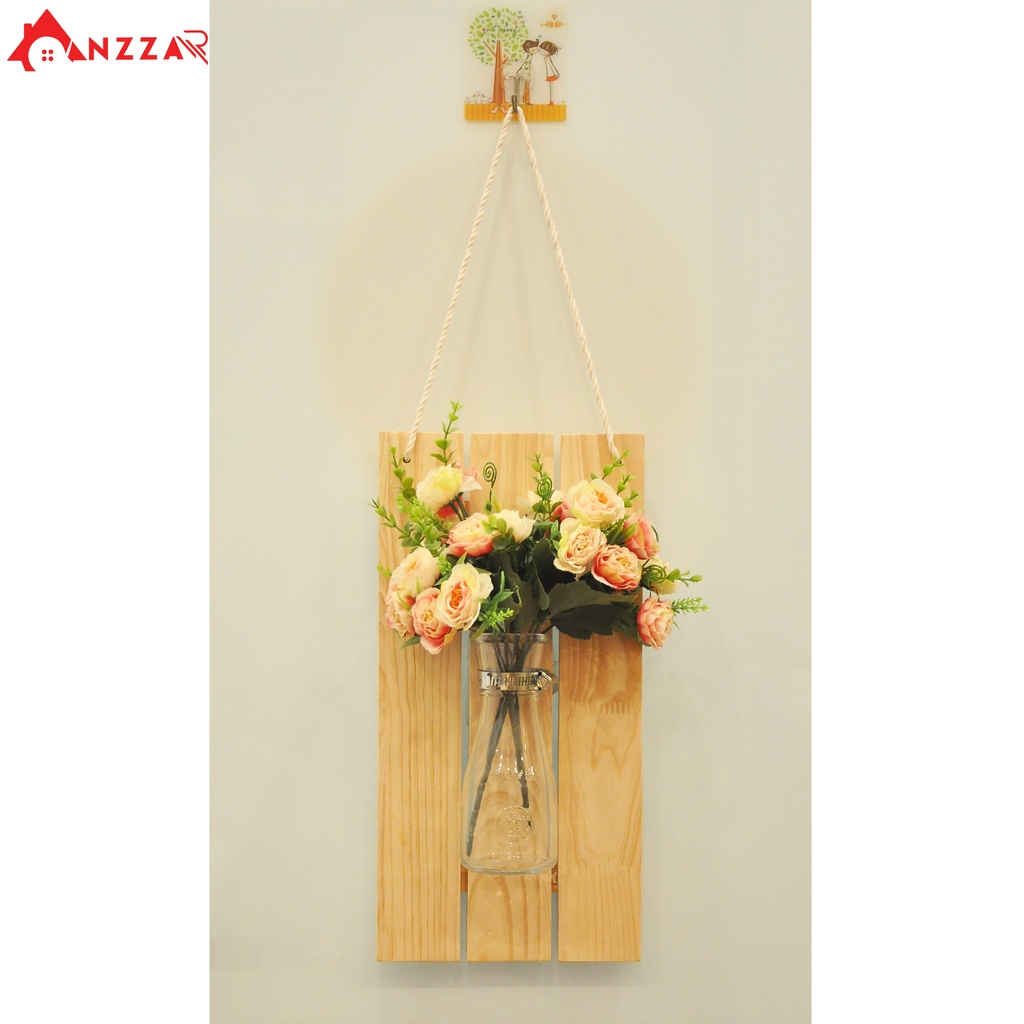 Giới thiệu Lọ hoa thủy tinh gắn bảng gỗ treo tường trồng cây, cắm hoa trang trí ban công, phòng cách, quán cà phê (chưa kèm hoa)