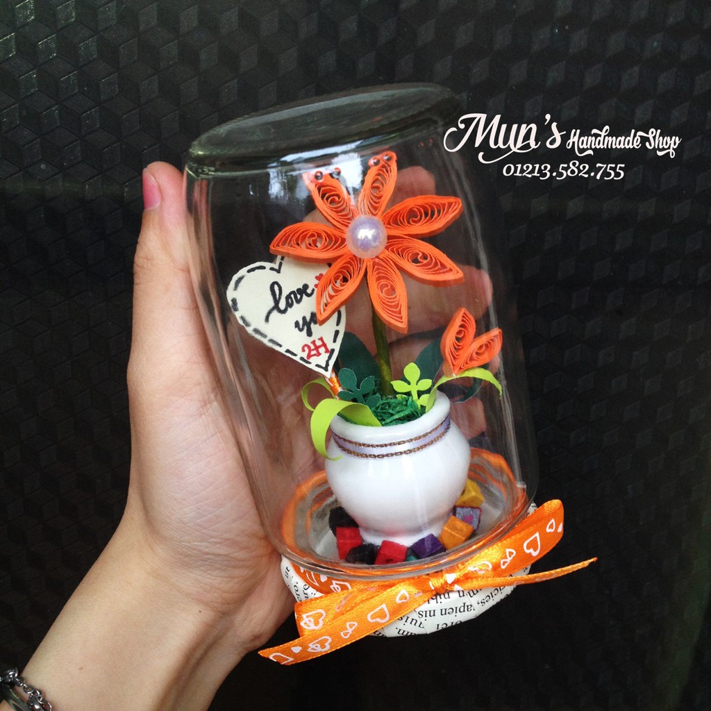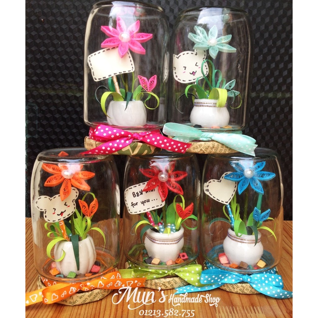 FLOWER IN JAR - Độc quyền tại Mun's Handmade Shop 💖Một chậu hoa xinh tươi bằng giấy xoắn siêu độc đáo, được đựng trong hũ thủy tinh trang trí tỉ mỉ, hoàn toàn handmade - hẳn là một món quà thú vị và ko đụng hàng dành cho người thân, bạn bè đó nha ^_^ Không những vậy mà còn trường tồn theo thời gian nữa :)) bạn chỉ cần lau mặt hũ là sáng chói ngay lại nè :x