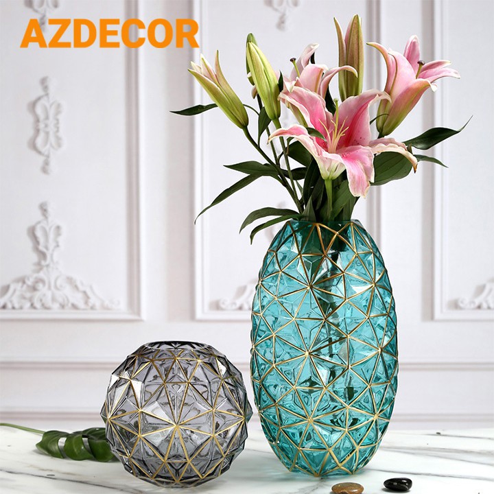 ✔️ Lọ hoa được làm từ chất liệu thủy tinh với nhiều màu sắc và kiểu dáng hiện đại theo phong cách châu Âu, dễ dàng phối với bất kỳ loại hoa nào.