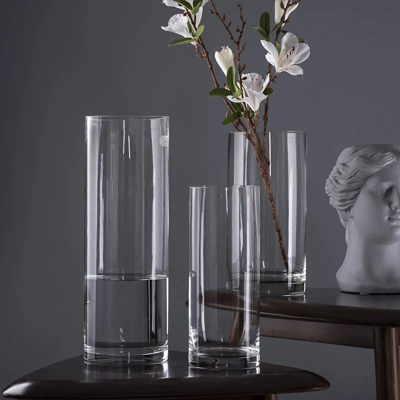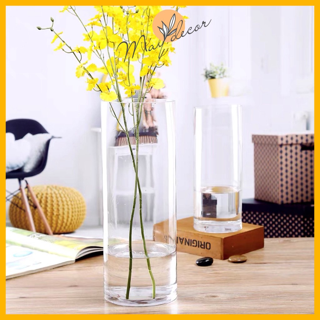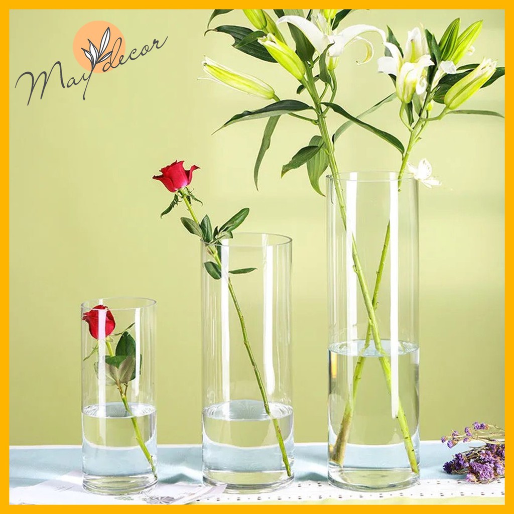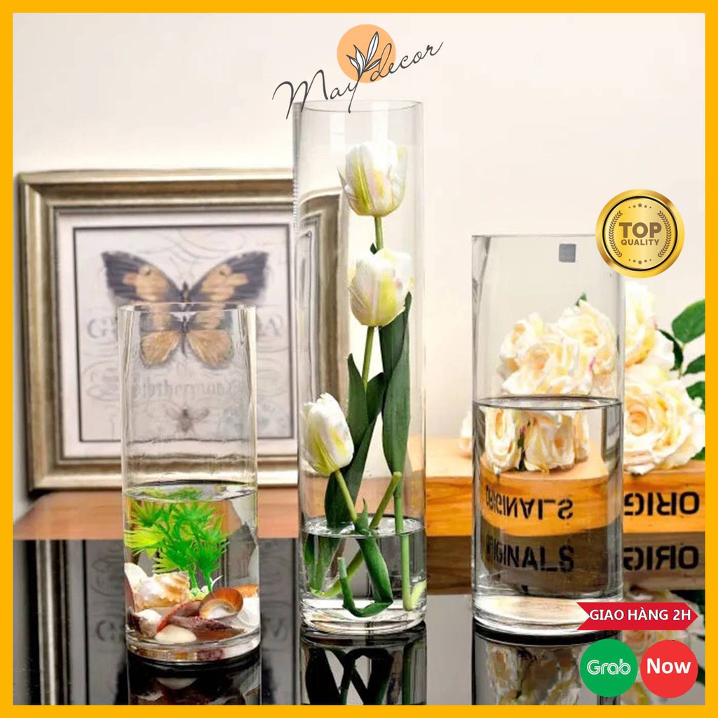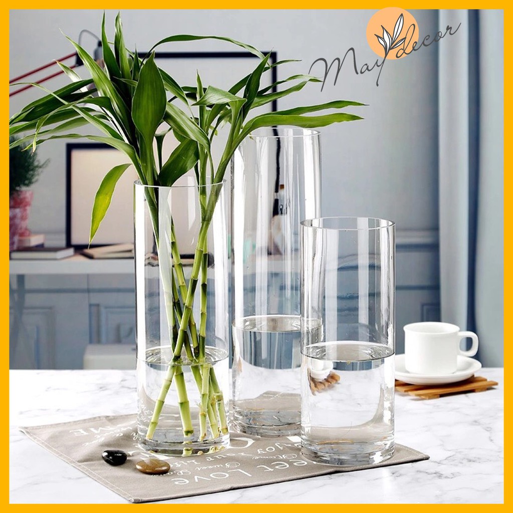 Lọ hoa thuỷ tinh hình trụ Maydecor bình hoa trang trí nhà cửa phong cách Việt Nam LH053