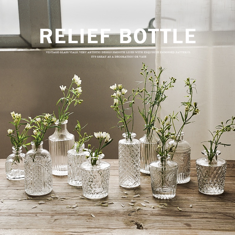 Lọ hoa thủy tinh họa tiết retro kiểu pháp làm đạo cụ trang trí và chụp ảnh nhiều mẫu