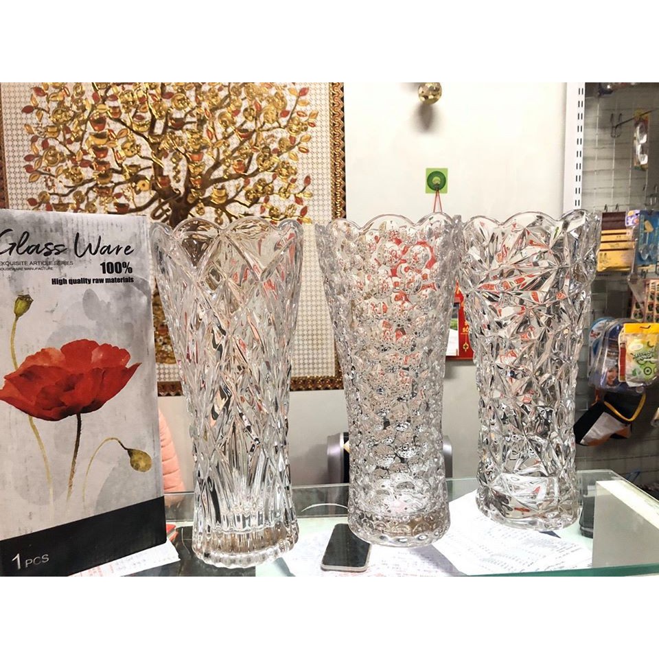 Giới thiệu Lọ hoa Thủy tinh hoa văn trắng cao 30 Cm