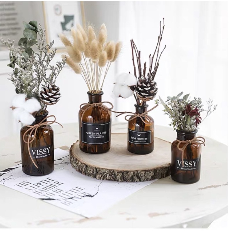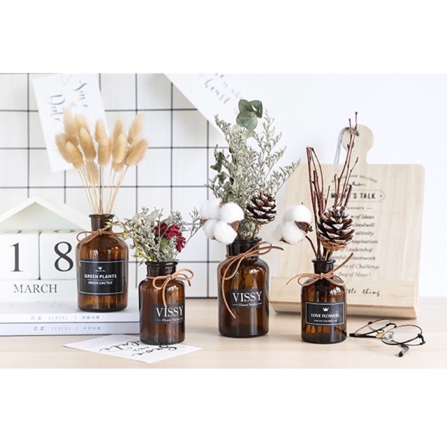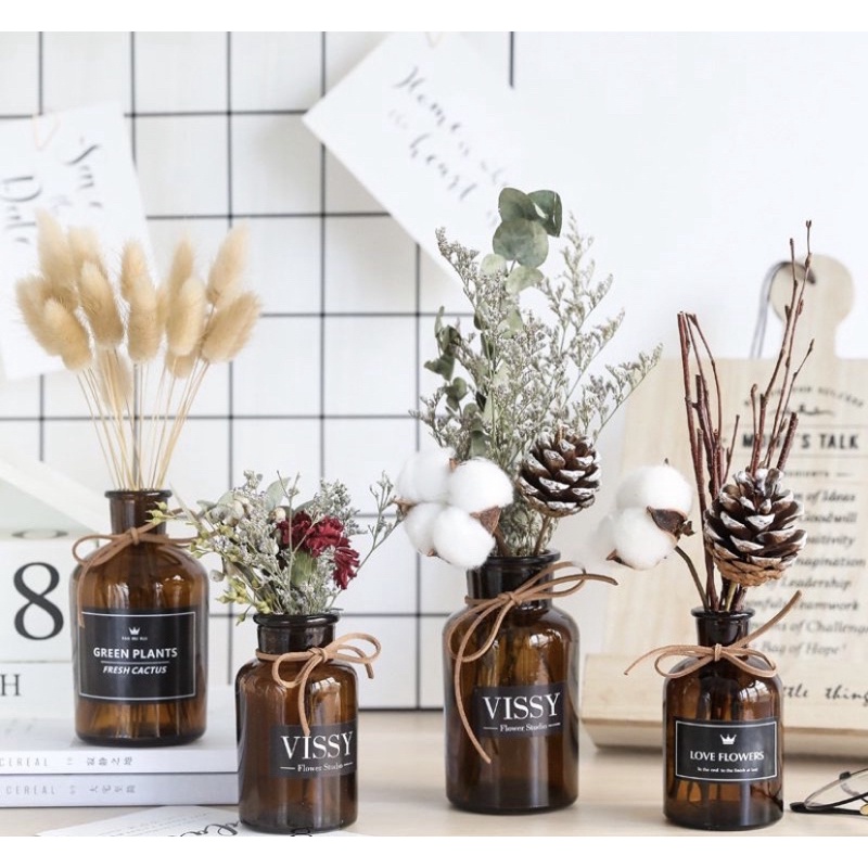 Combo gồm: Lọ thủy tinh + hoa khô cắm trong bình (y hình)
