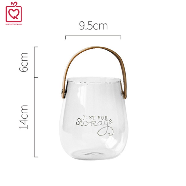 Lọ hoa thủy tinh kèm hoa lụa có quai treo Just For Storage, bình hoa treo trang trí nghệ thuật