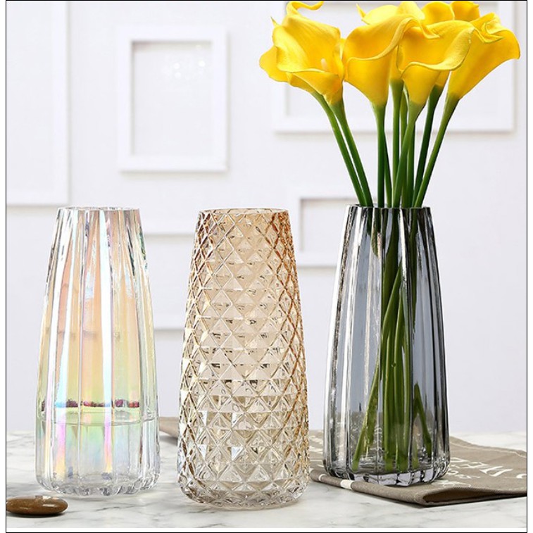 ✔️ Lọ hoa được làm từ chất liệu thủy tinh với nhiều màu sắc và kiểu dáng hiện đại theo phong cách châu Âu, dễ dàng phối với bất kỳ loại hoa nào.