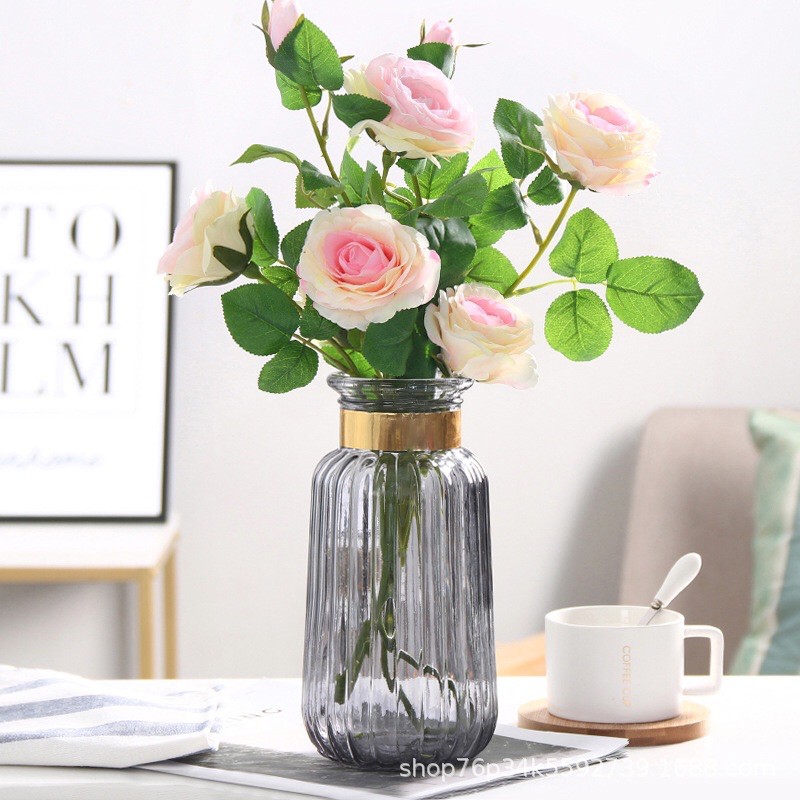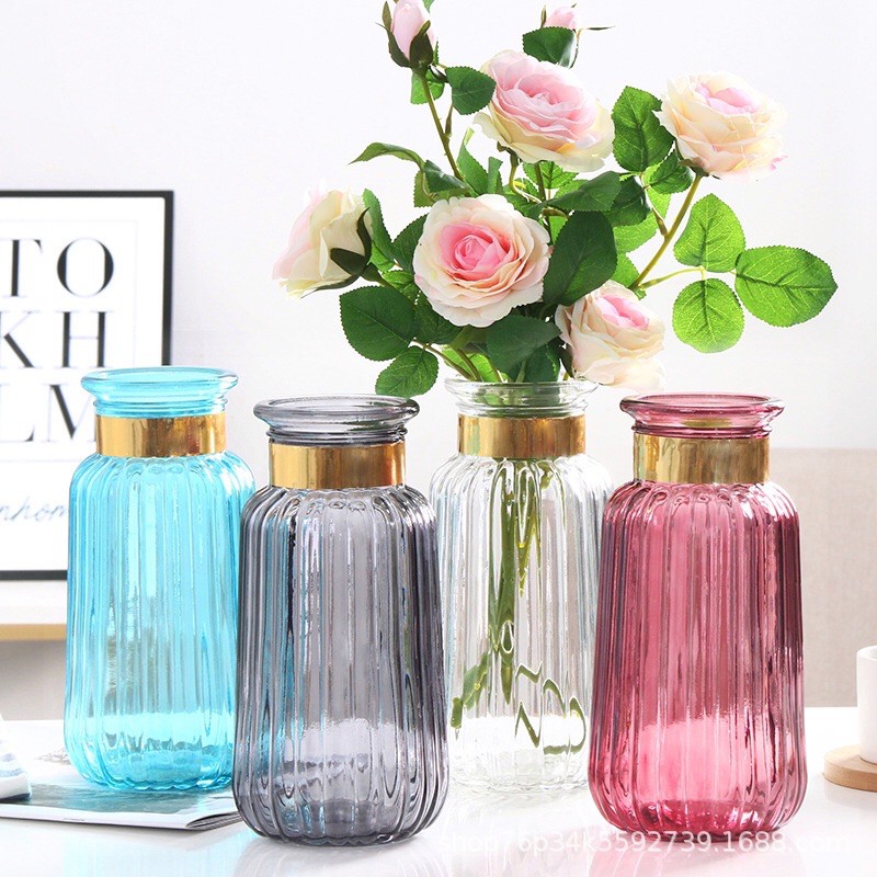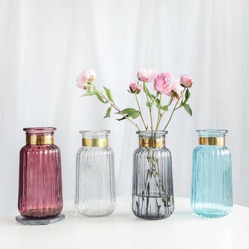 Giới thiệu Lọ hoa thủy tinh miệng chum 3 màu Vân sọc , bình cắm hoa phong cách Bắc Âu