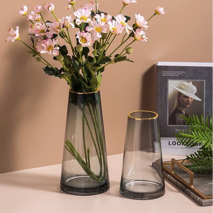Nhà cửa & Đời sống > Trang trí nhà cửa > Bình trang trí || Lọ hoa thuỷ tinh miệng sơn mạ vàng cao cấp Qhouse , bình hoa trang trí phòng khách phòng ngủ để bàn làm việc đẹpCòn hàng