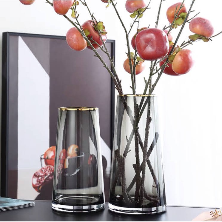 Lọ hoa thuỷ tinh miệng sơn vàng cao cấp trang trí Bắc Âu đẹp đơn giản sang trọng Qhouse