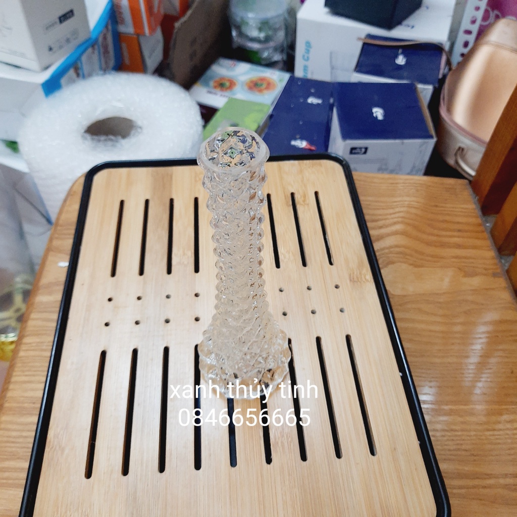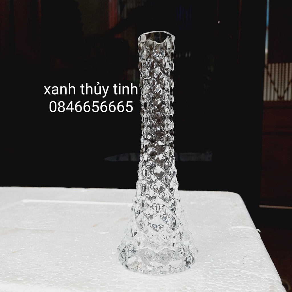 Lọ hoa thủy tinh miệng tròn, họa tiết kim cương - lọ nhỏ tháp tròn màu trắng- thủy tinh việt nam