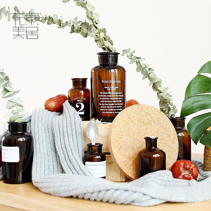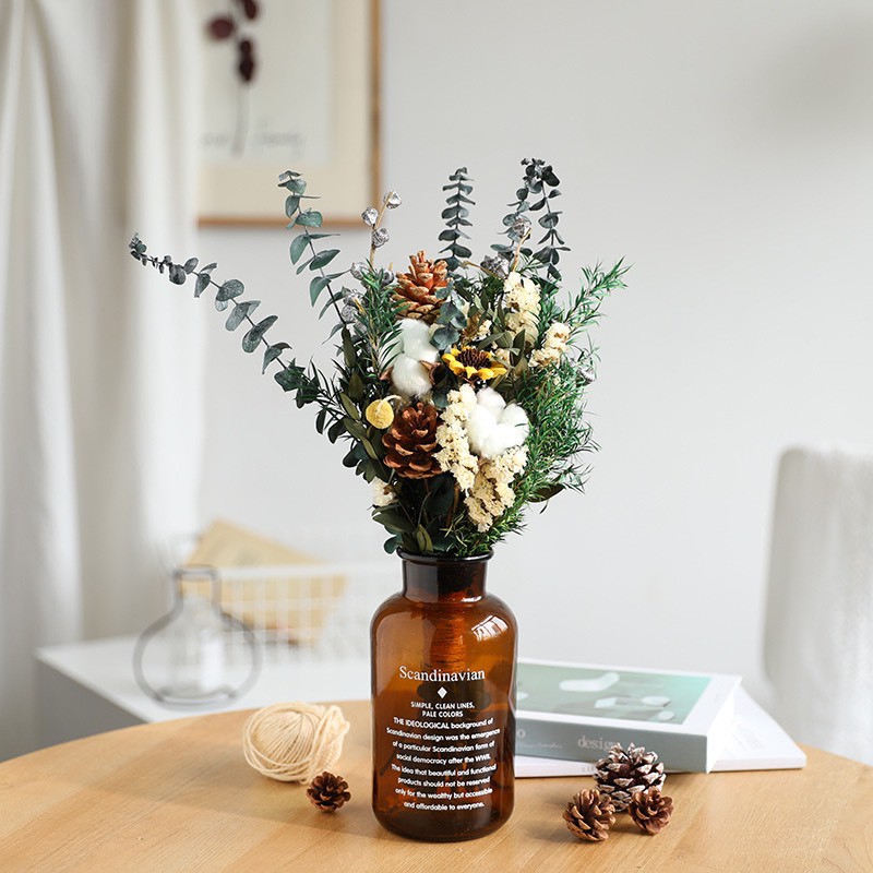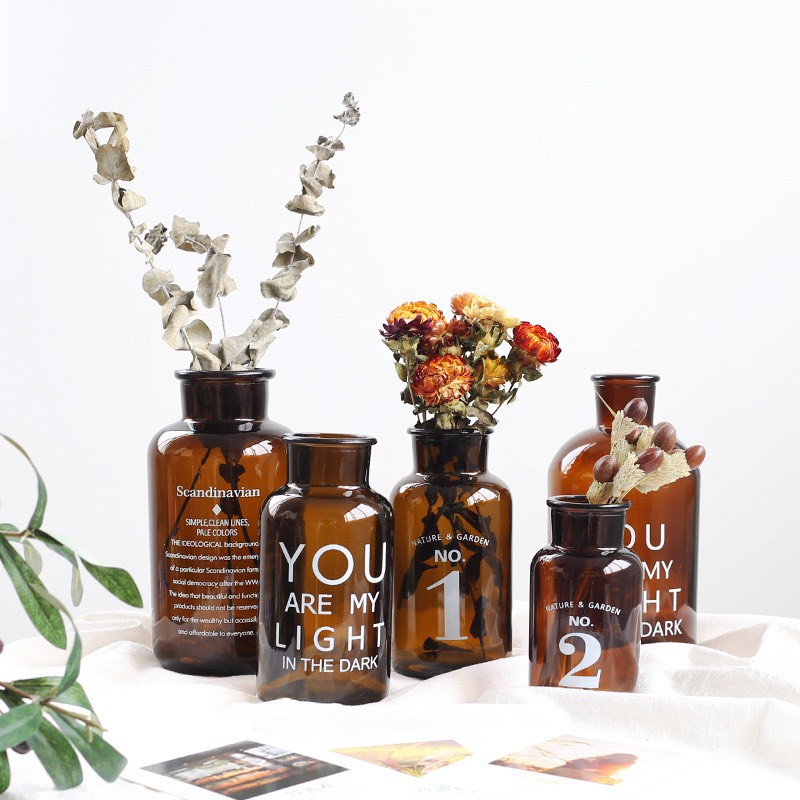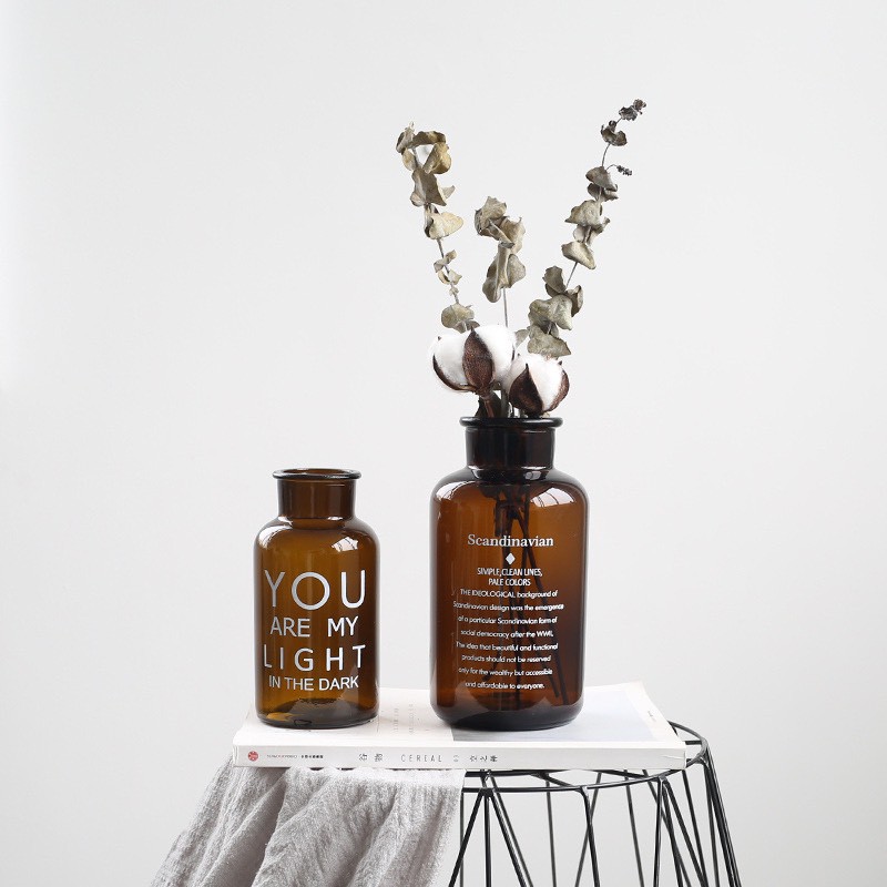 Lọ Hoa Thủy Tinh Nâu Scandinavian ❤️FREESHIP❤️ bình thủy tinh đẹp kèm nơ