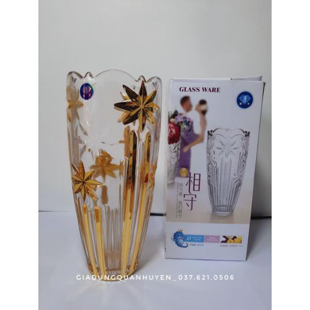 Lọ hoa thủy tinh nhũ vàng cap cấp size 30cm