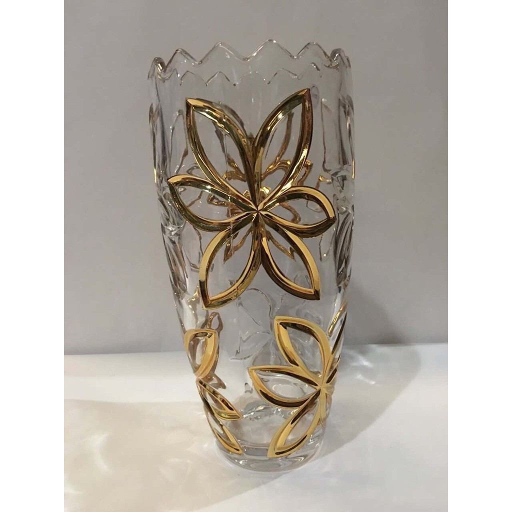 Giới thiệu Lọ hoa thủy tinh pha lê khảm hoa vàng
