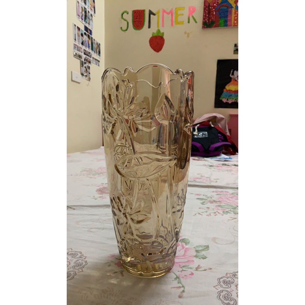 Nhà cửa & Đời sống > Trang trí nhà cửa > Bình trang trí || Lọ hoa thủy tinh pha lê vàng 30cm (trụ bầu)Còn hàng
