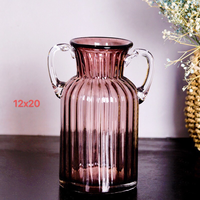 Lọ hoa thủy tinh tím hồng 2 tai (CL.20089)Lọ hoa cao 20cm, miệng 12cm