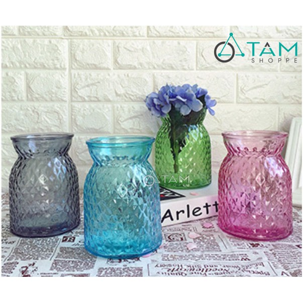 Lọ hoa thủy tinh màu trong suốt tuy đơn giản nhưng cực kì bắt mắt, chỉ cần đặt cạnh nơi có ánh sáng thì màu của bình sẽ rọi màu vi diệu...