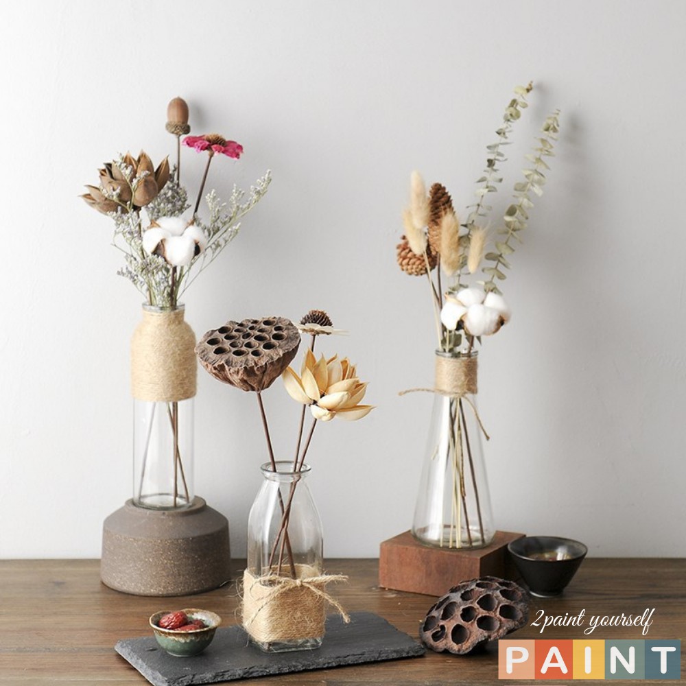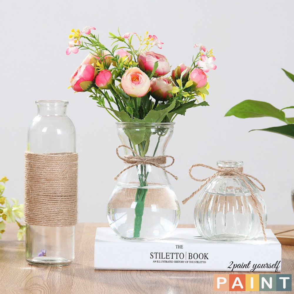 Lọ hoa thủy tinh trong Bình hoa decor trang trí cuốn dây thừng gai đẹp