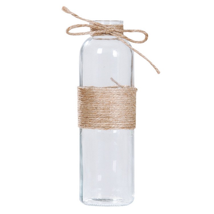 Lọ hoa thủy tinh trong -Bình hoa decor trang trí dây gai vintage decor thích hợp cắm hoa, trồng cây thủy canh, trang trí