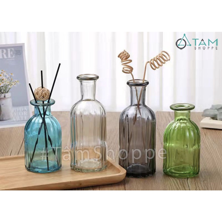 Lọ hoa thủy tinh trong suốt cổ cao sọc nhiều màu xinh xắn.