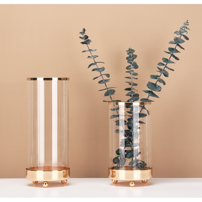 Lọ hoa thủy tinh trong suốt Phnom Penh, bình hoa cao cấp Nhà VinChất liệu: Thủy tinh + Kim loại