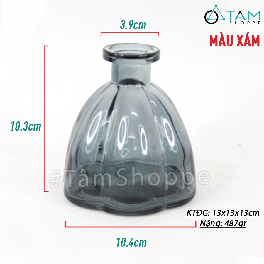 Lọ hoa thủy tinh trong suốt chụp bí 6 mùi nhiều màu LHTT-68