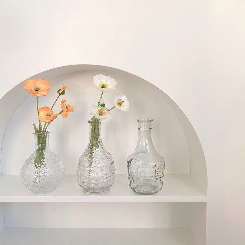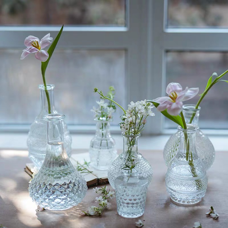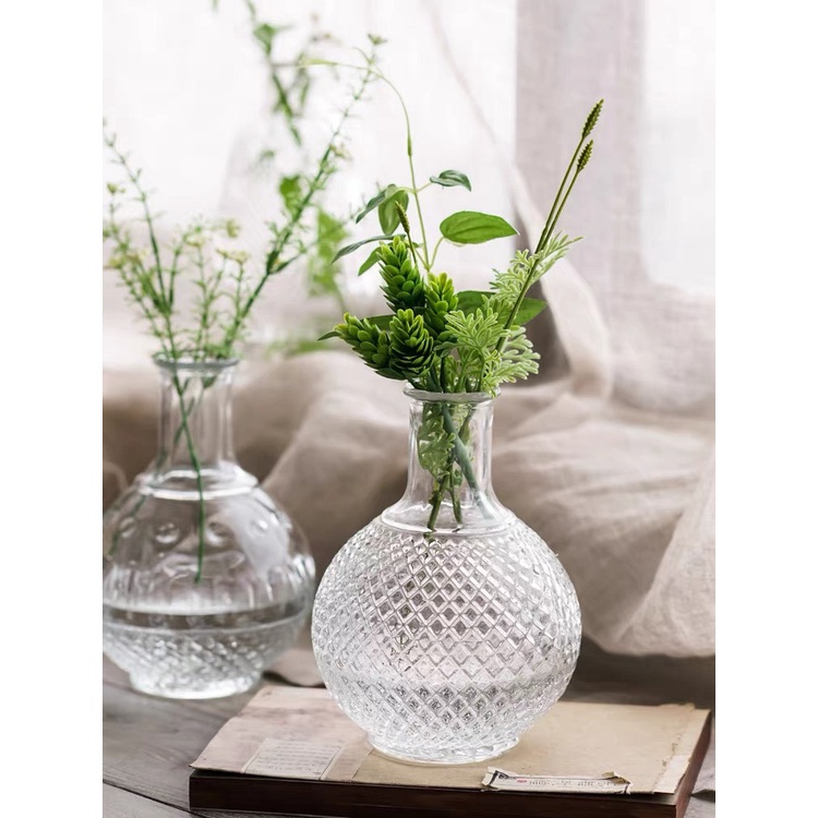 Lọ hoa thủy tinh trong suốt Luvy Decor, bình hoa họa tiết vân nổi
