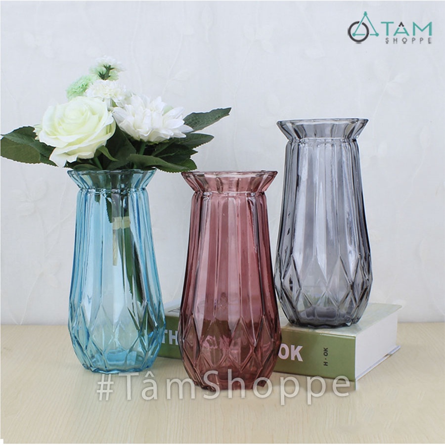 Nhà cửa & Đời sống > Trang trí nhà cửa > Bình trang trí || Lọ hoa thủy tinh trong suốt vát kim cương nhiều màu LHTT-58Còn hàng