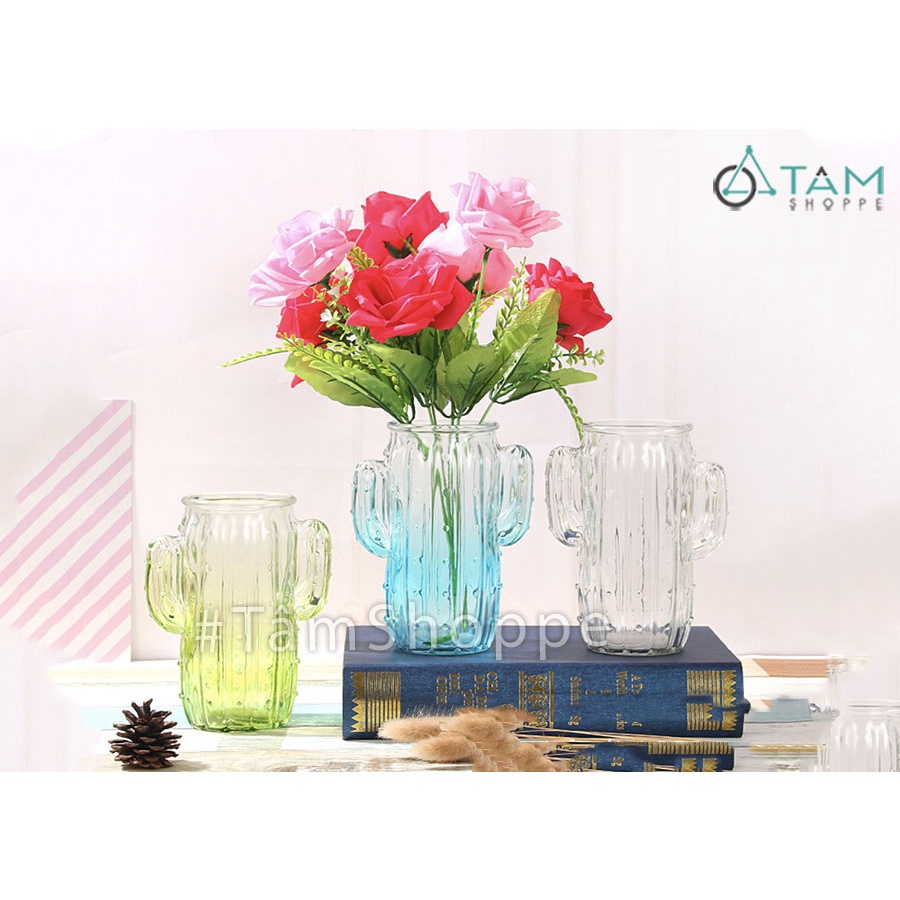 Nhà cửa & Đời sống > Trang trí nhà cửa > Bình trang trí || Lọ hoa thủy tinh trong suốt xương rồng nhiều màu LHTT-60Còn hàng