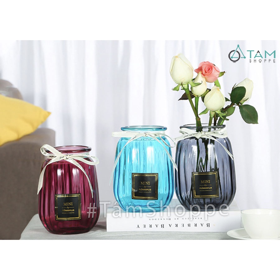 Nhà cửa & Đời sống > Trang trí nhà cửa > Bình trang trí || Lọ hoa thủy tinh trong suốt chum sọc nhiều màu LHTT-55Còn hàng