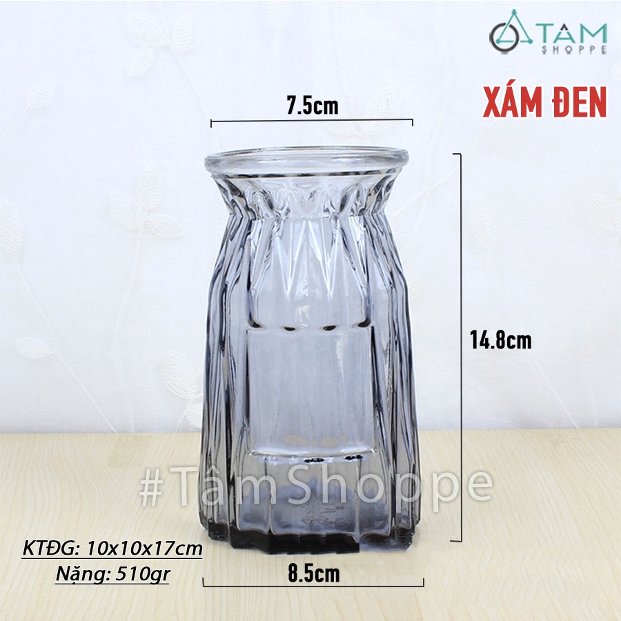 Nhà cửa & Đời sống > Trang trí nhà cửa > Bình trang trí || Lọ hoa thủy tinh trong suốt vát khía tem nhiều màu LHTT-59Còn hàng
