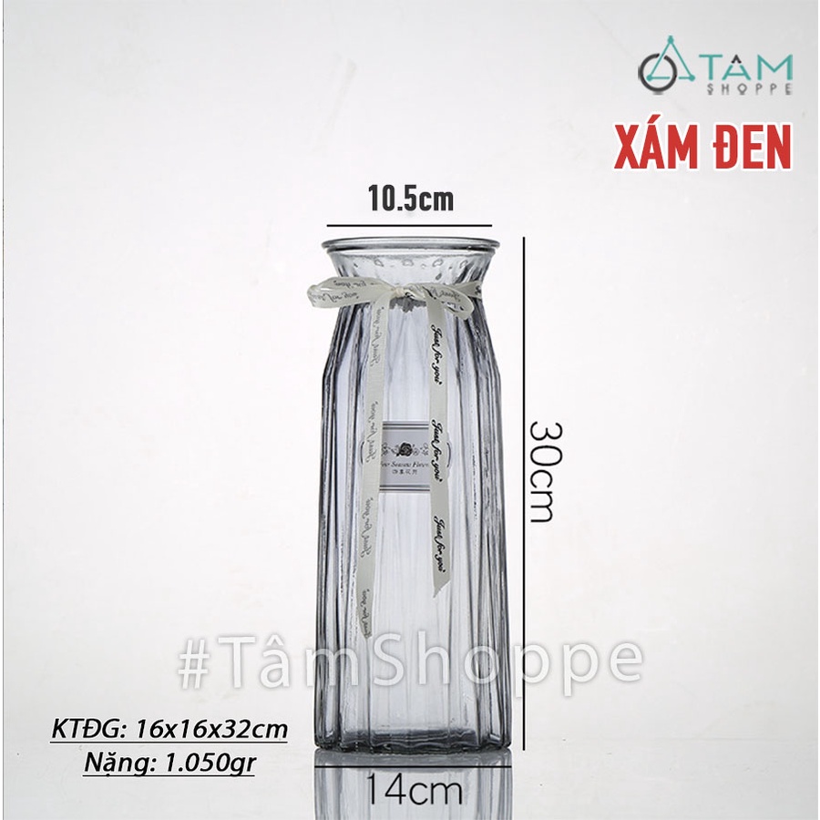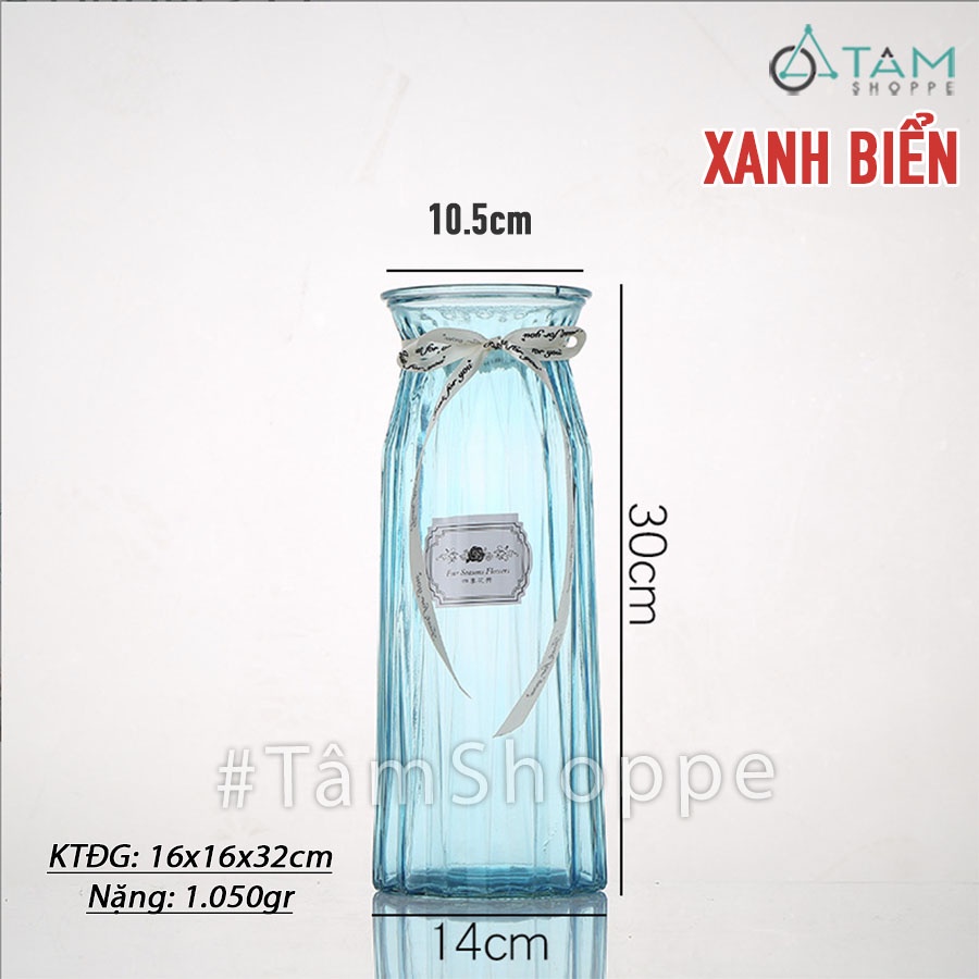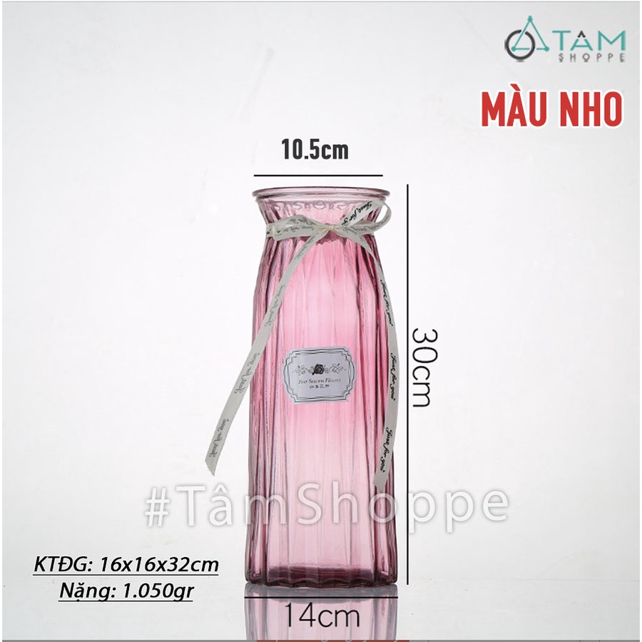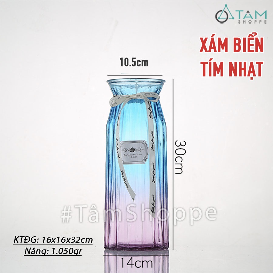 Nhà cửa & Đời sống > Trang trí nhà cửa > Bình trang trí || Lọ hoa thủy tinh trong suốt vát sọc khế nhiều màu LHTT-61Còn hàng