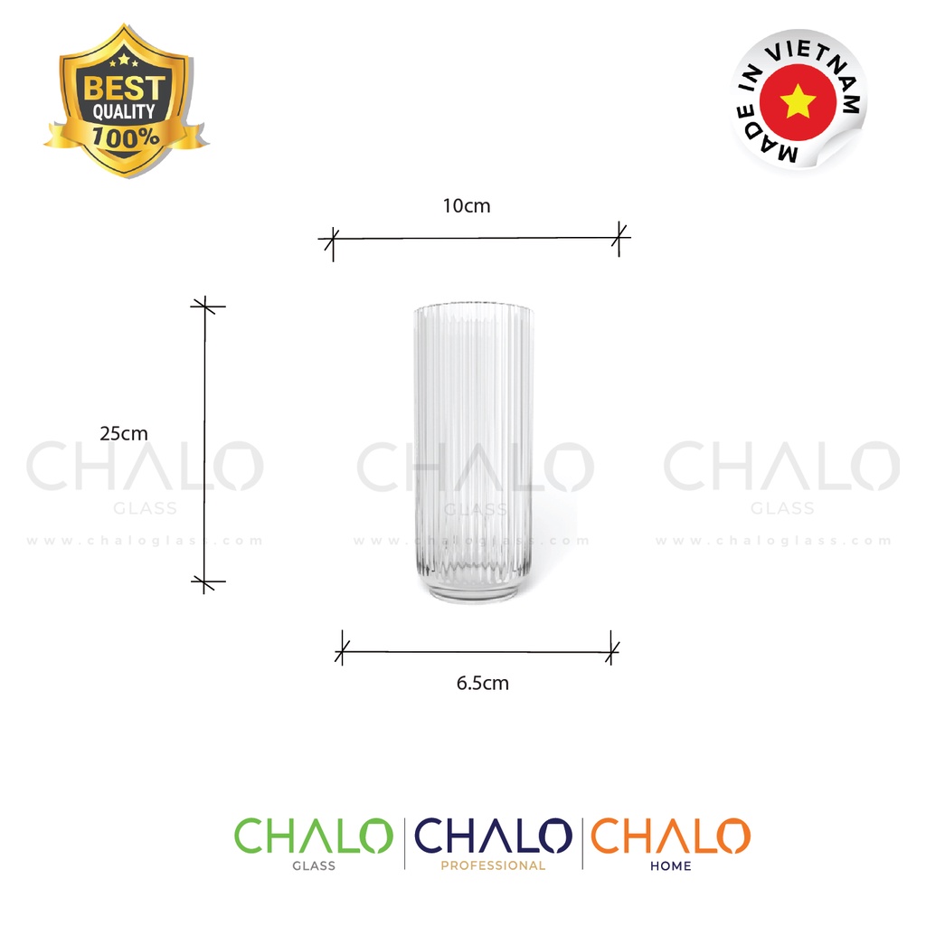 Lọ hoa thuỷ tinh trụ tròn hoạ tiết sọc các cỡ (10x25cm) sở hữu chất liệu thủy tinh trong suốt và dày dặn.Sản phẩm được sản xuất tại Việt Nam, là sản phẩm trang trí được ưa chuộng bởi kiểu dáng hiện đại, chuẩn phong cách decor tối giản nhưng không kém phần sang trọng.