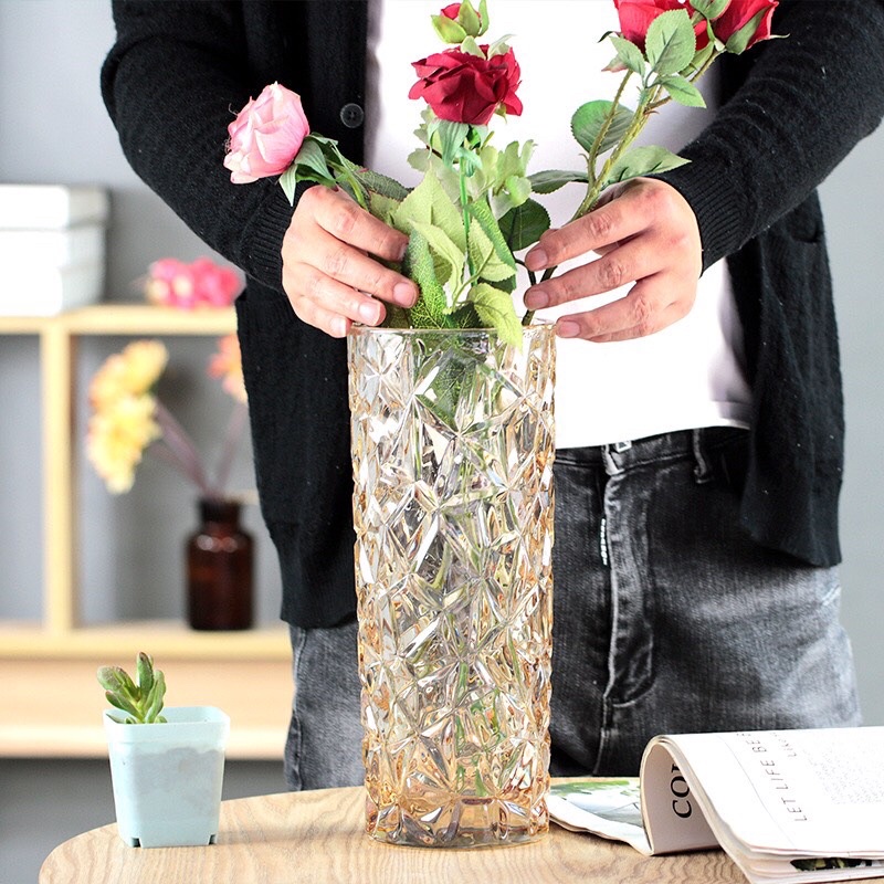 Bình hoa thuỷ tinh cao các bạn cắm ở bàn tiếp khách hoặc góc decor trong nhà . bình hoa cỡ cao 20cm thì để đâu cũng được rất vừa tầm mắt ,kể cả khi để ở trên chiếc bàn cao .