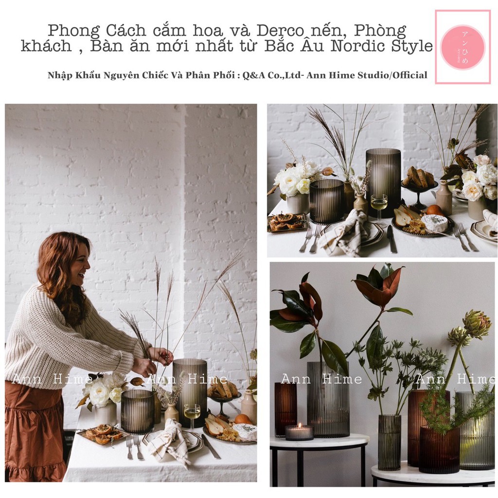 Sản phẩm cao cấp 5⭐Lọ Hoa Thủy Tinh Vân Sọc Dọc 3 Màu Xanh Nâu Xám Phong Cách Nordic Bắc Âu💢Annhime Official nhập khẩu trực tiếp độc quyền-giá hợp lý-bảo hành dài.