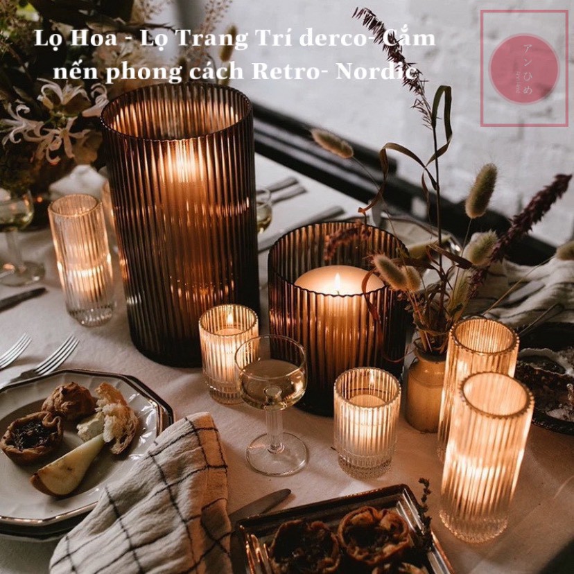 ✅Bình hoa thủy tinh vân sọc dọc, dáng đứng cao phong cách Bắc Âu để cắm các cành thạch nam hoặc cành dài