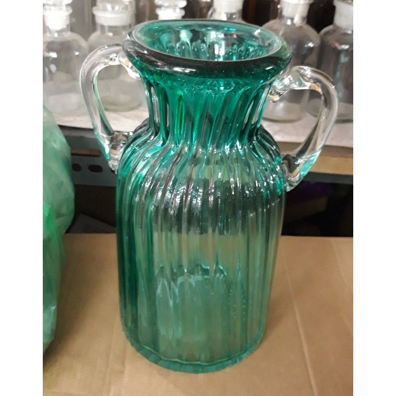 Lọ hoa thủy tinh xanh ngọc 2 tai