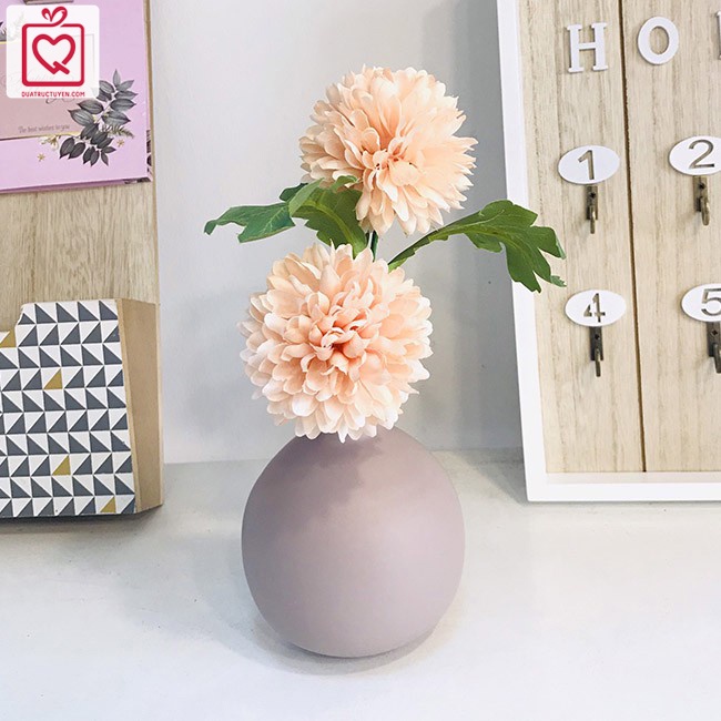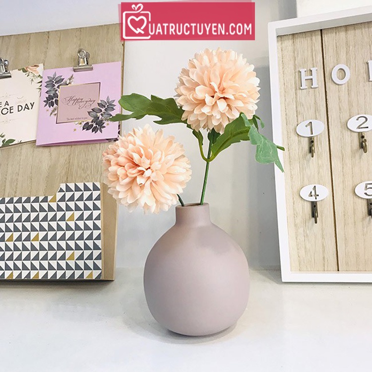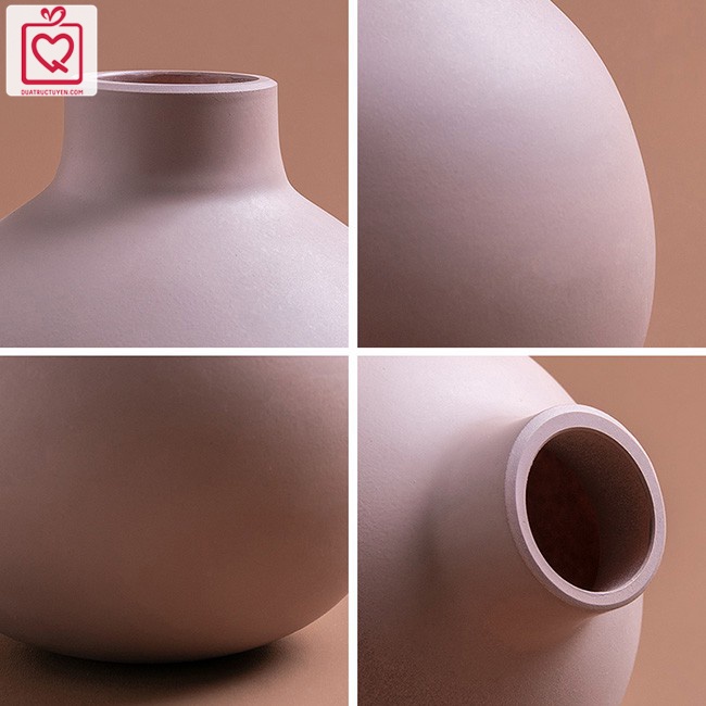 - Lọ hoa có kiểu dáng tròn nghệ thuật với những đường nét uốn lượn mềm mại kết hợp cùng màu hồng nâu nhạt cổ điển rất dễ kết hợp và làm nổi bật mọi không gian trưng bày.