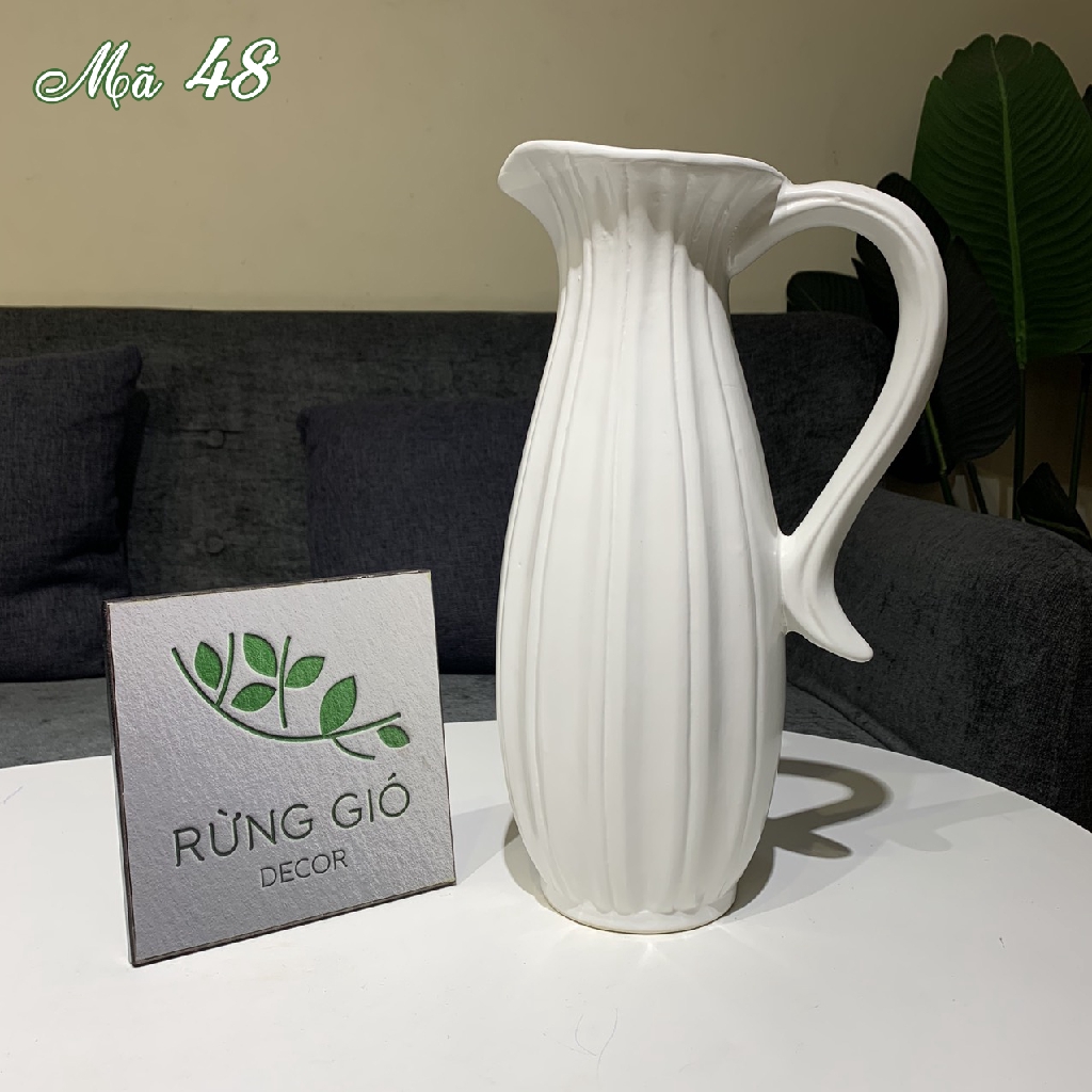 Mã 48: lọ trắng có quai dáng dài, men mát hơi bóng, cao 32cm, miệng rộng tầm 10cm, giá 250k
