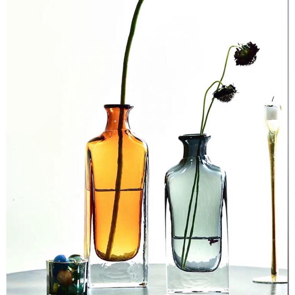 Giới thiệu Lọ hoa trang trí hình dáng vỏ chai với lớp thủy tinh dày dặn, màu sắc mới lạ, thiết kế tinh tế, bình decor