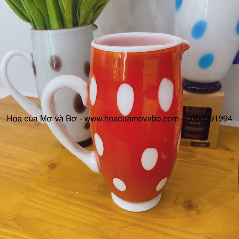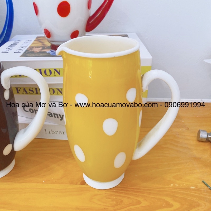 Lọ Hoa Bình hoa Cốc Miệng Rót Có Quai Cầm - Chấm bi -- Bình Trang Trí - Decor Nội ThấtMô tả sản phẩm : Lọ gốm sứ có quai miệng rót uống trà sữa hoặc cắm hoa Decor nội thất