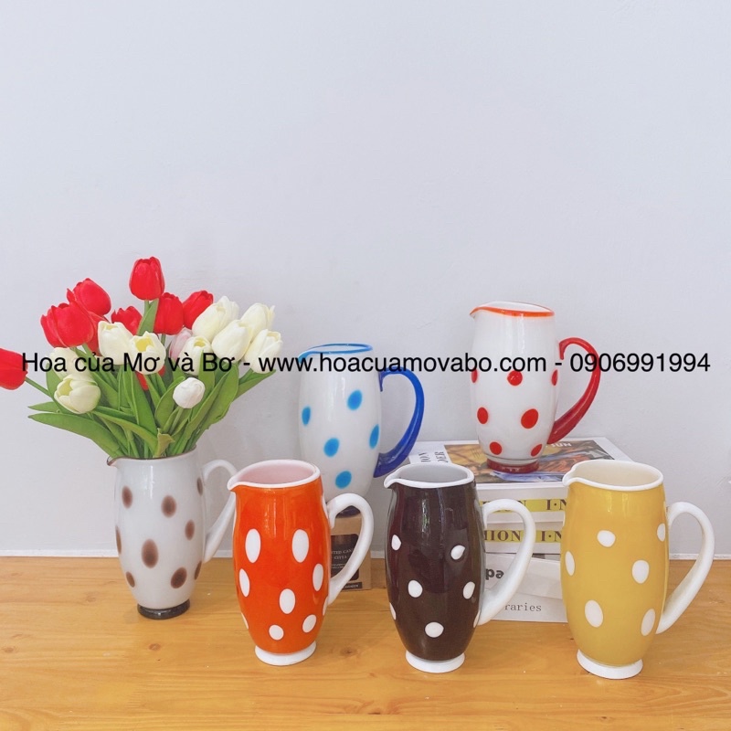 Lọ Hoa Trang Trí Merber (Mơ & Bơ) Nhiều Màu Có Quai Họa Tiết Chấm Bi Thích Hợp Cắm Hoa Khô, Hoa Giả, Hoa Decor Trang Trí