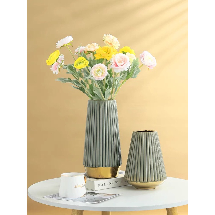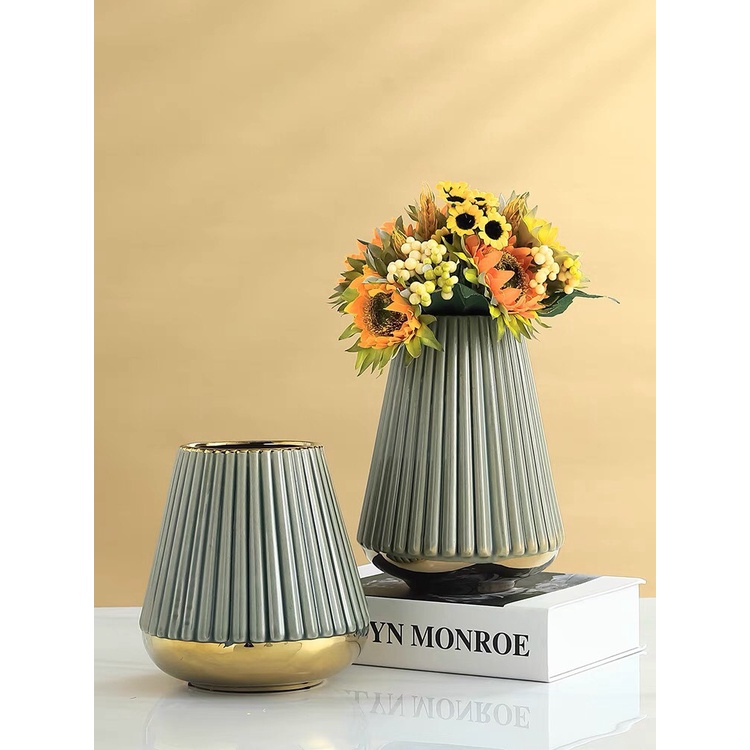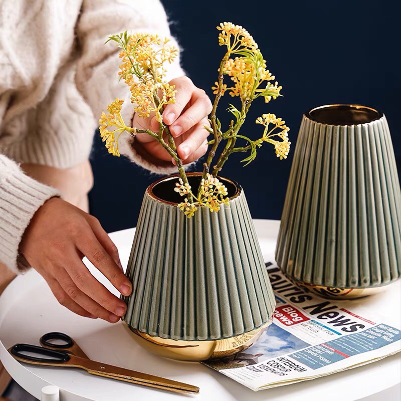 Lọ hoa xanh mint viền vàng, nhiều size màu sắc tinh tế, cắm được nhiều dáng hoa